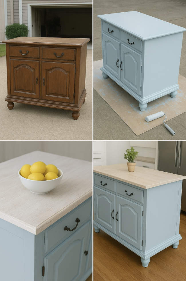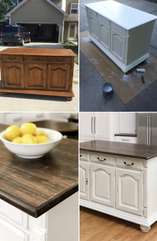Recycle an old side cabinet into a chic, designer kitchen island.