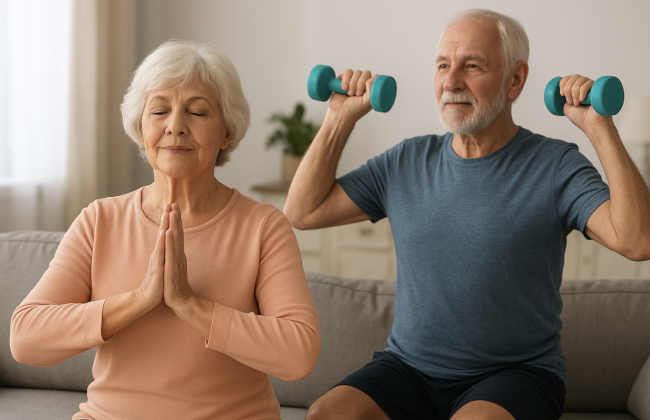 Seniors should engage in strength training to maintain strong muscles and aerobic exercise to enhance their cardiovascular health. Jogging, swimming and dancing will strengthen the heart and lungs while improving blood circulation. Flexibility exercises can help alleviate stiffness and pain associated with inactivity, as well as protect the joints from injury. Adults also need to engage in balance exercises regularly to improve their coordination and build strength.